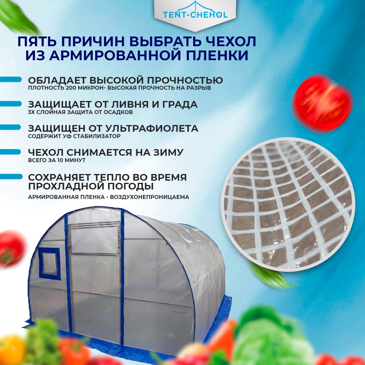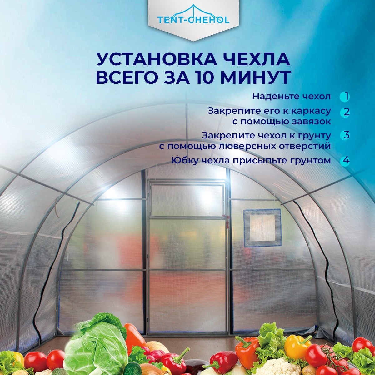 погодных условий. Чехол для теплицы также помогает защитить растения от вредителей и ультрафиолетовых лучей. Чехол легко надевается на теплицу и может быть настроен на размер и модель, что обеспечивает наилучшую защиту для ваших растений.
